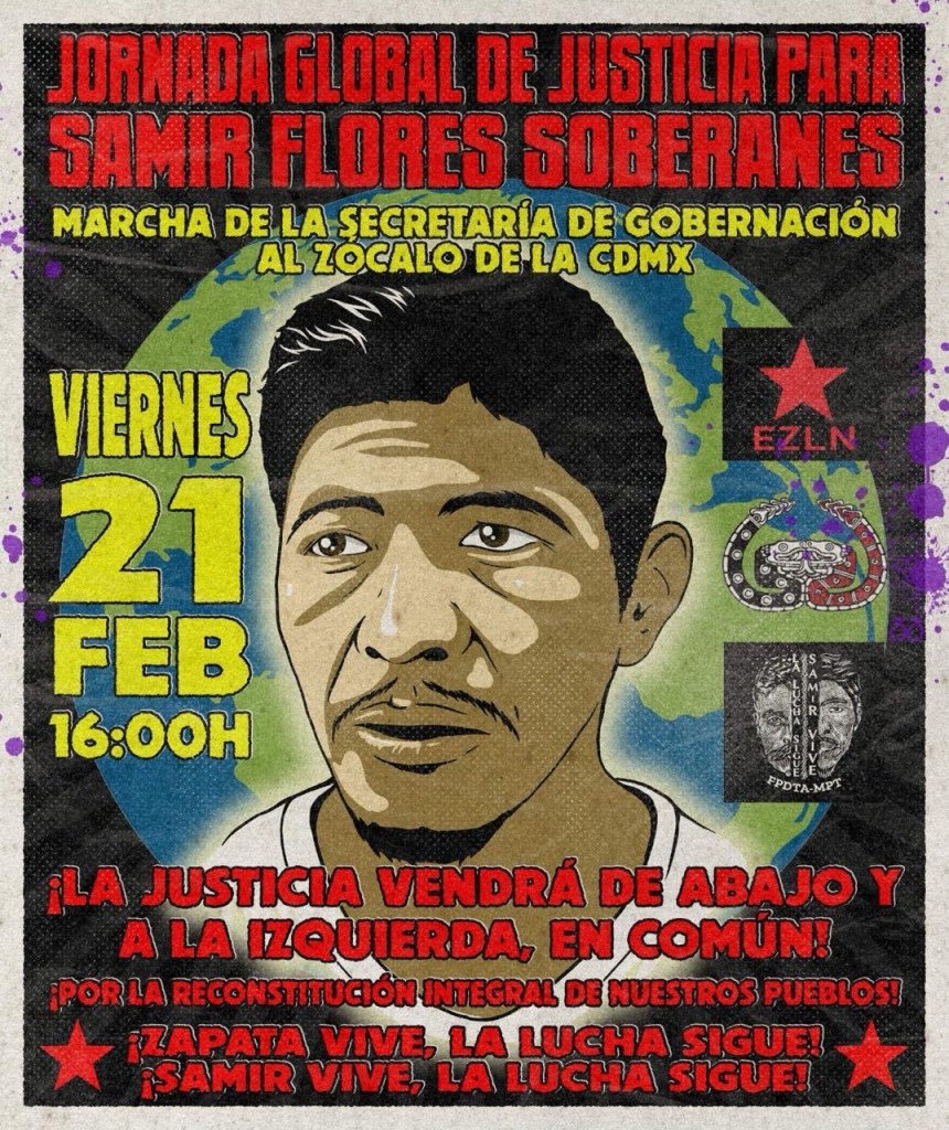 En el marco de #JornadaGlobal, Justicia para “Samir Flores Soberanes”, que en días pasados hicieran pública, el Frente de Pueblos en Defensa de la Tierra y el Agua Morelos, Puebla, Tlaxcala, FPDTA-MPT; el Congreso Nacional Indígena, CNI-CIG y el Ejército Zapatista de Liberación Nacional, EZLN.