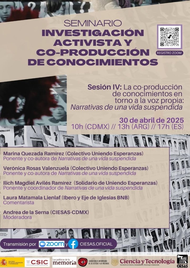 En esta ocasión platicaremos sobre la coproducción de conocimientos a partir de la voz propia, abordando el caso del libro Narrativas de una vida suspendida.