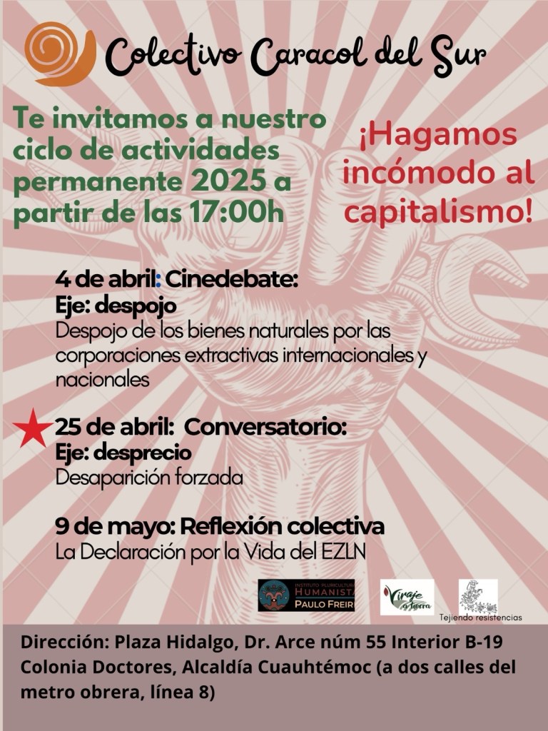 Conversatorio: “desaparición forzada”. Abril 25, 17 hrs. Dr. Arce 55