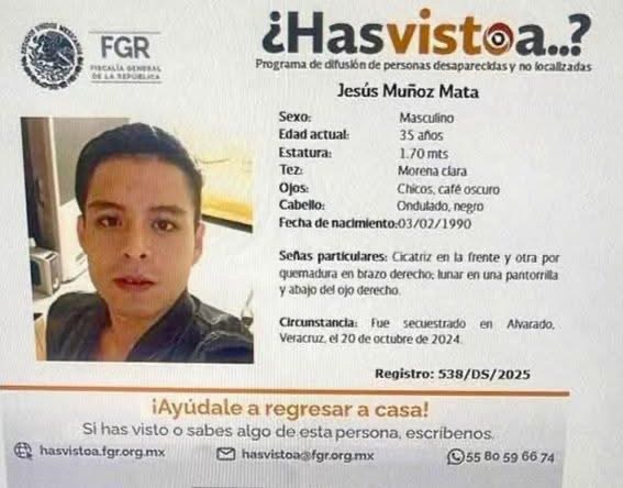 La tragedia de la desaparición llegó a mi familia. Jesús Muñoz es mi sobrino. Y lo estamos buscando. Primero fue un secuestro, pidieron dinero y se les dio. Estuvimos con la esperanza de que nos lo regresaran, pero hasta hoy no sucedió.