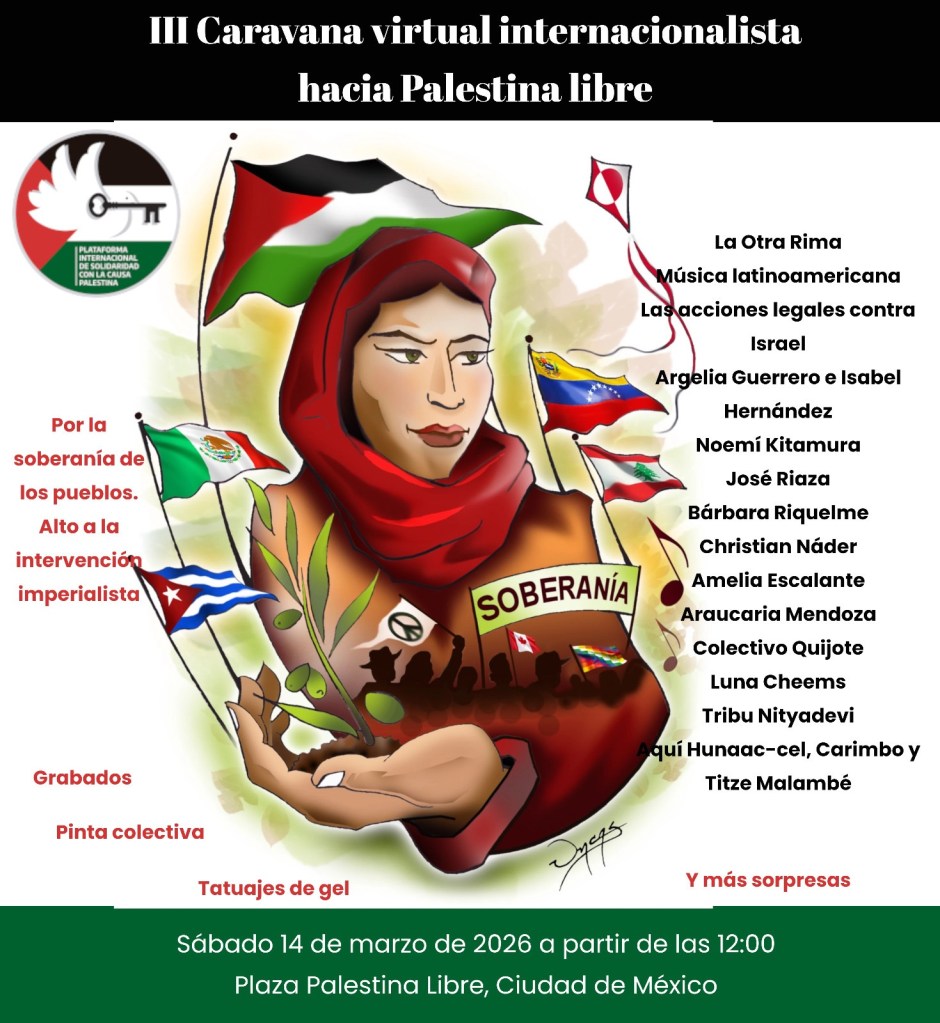 III Caravana virtual internacionalista hacia Palestina Libre. Sáb 14 de marzo, 12pm, Plaza Palestina Libre, CDMX