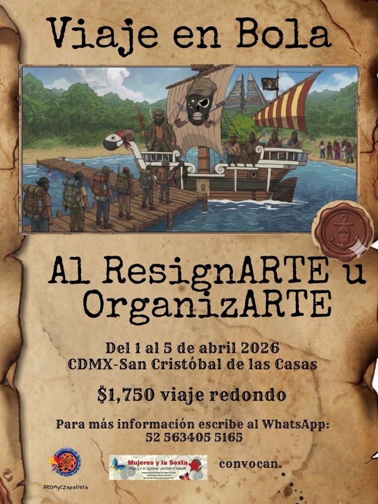 Salida: Miércoles 1 de abril, 6pm de Café Cultural Infinito para llegar al Semillero de la Comisión Sexta, CIDECI el Jueves 2 de abril, por la mañana.