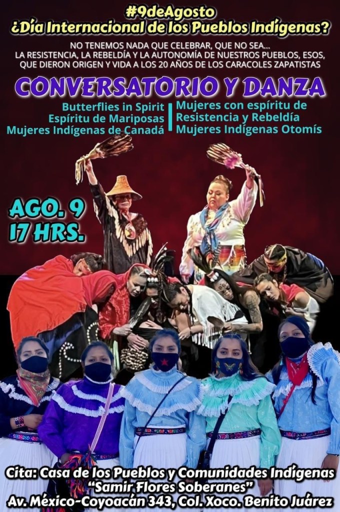 Desde la Casa de los Pueblos y Comunidades Indígenas “Samir Flores Soberanes”, las Mujeres Indígenas Otomís con Espíritu de Resistencia y Rebeldía y, en coordinación con las integrantes de “Butterflies in Spirit” (Espíritu de Mariposas), sobrevivientes y familiares de las mujeres y niñas indígenas desaparecidas y asesinadas en Canadá, que trabajan para crear conciencia sobre las las injusticias y la discriminación a la que se enfrentan día a día, tienen el honor de hacer la siguiente…