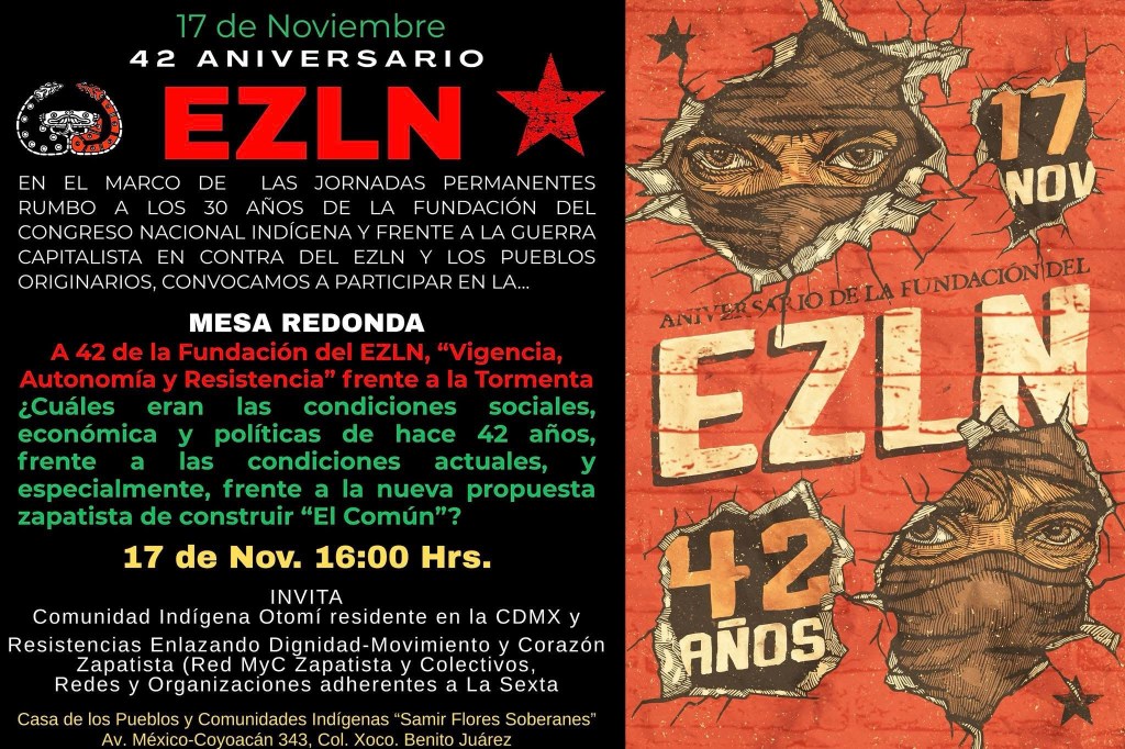 CITA: 17 de Noviembre, 16:00 Hrs. Al terminar, pastel por el 42 Aniversario del EZLN y las Mañanitas Zapatistas.